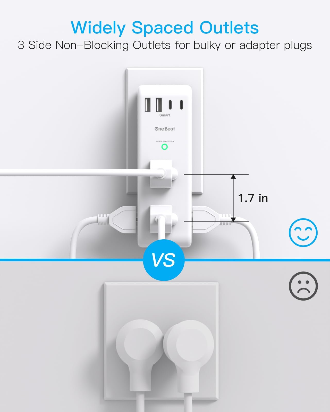 - 【Safety Guaranteed】 – Certified by ETL. USB outlet splitter prevent your electric devices from over-current/over-charge/ short circuit/over-heated. Fire-resistant ABS shell (1382℉), and high-quality component can improve durability and safety.