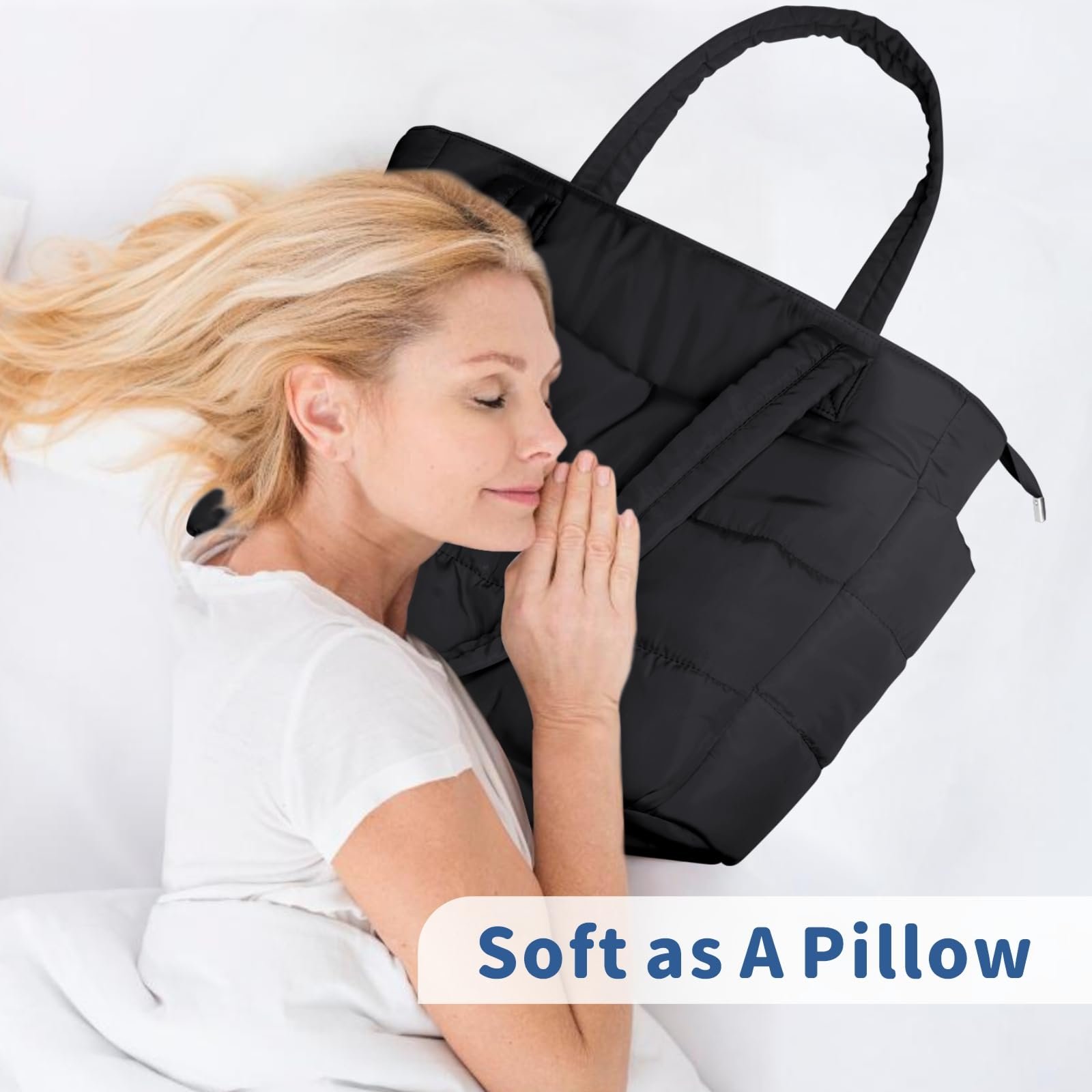 Review TOPDesign Puffer Tote Bag for Women, Lightweight Puffy Handbag with Compartments, Quilted Shoulder Bag for Work, Travel, Gym, Black, Medium, Casual.