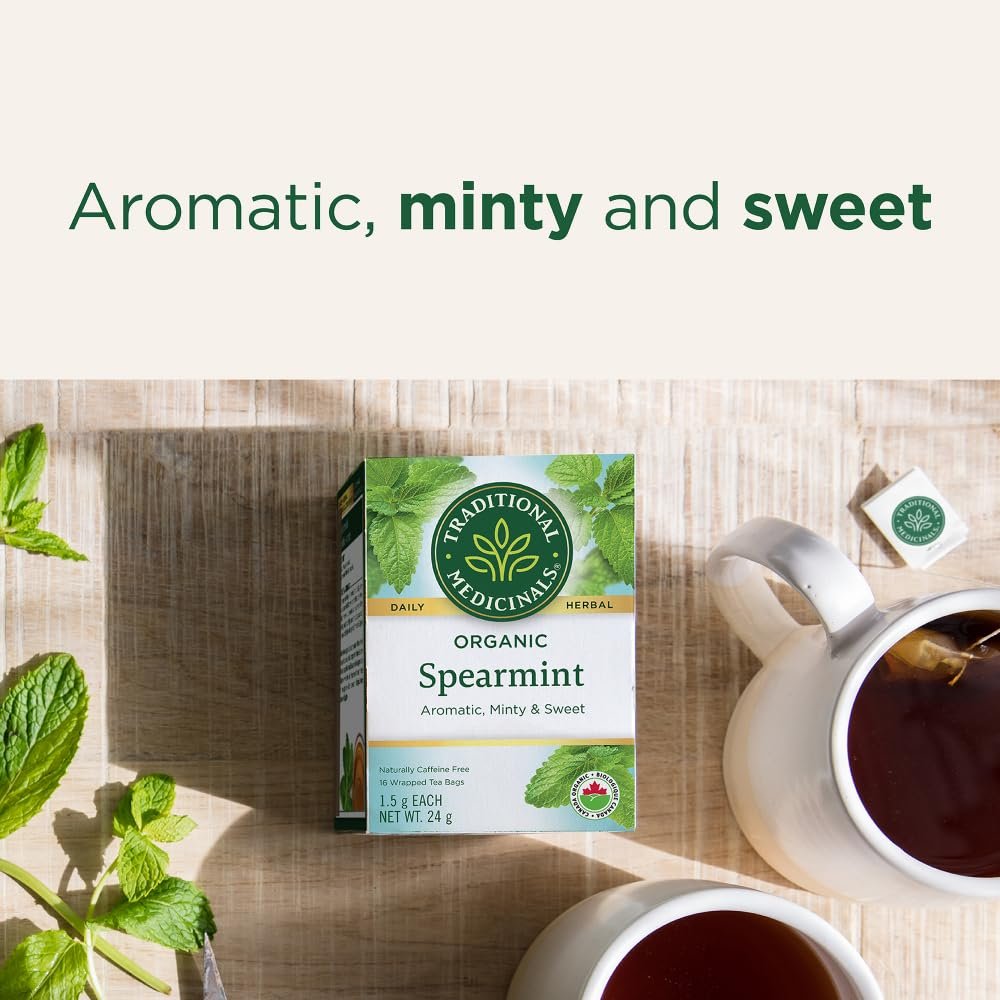 Review Traditional Medicinals – Organic Spearmint Herbal Tea (Pack of 1) – Refreshing and Minty – 16 Tea Bags Total.