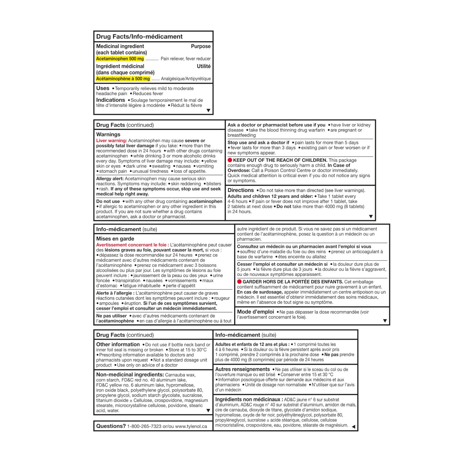 • CONTAINS ACETAMINOPHEN: Tylenol Extra Strength Acetaminophen 500mg eZ Tablets are tough on pain, easy on your stomach