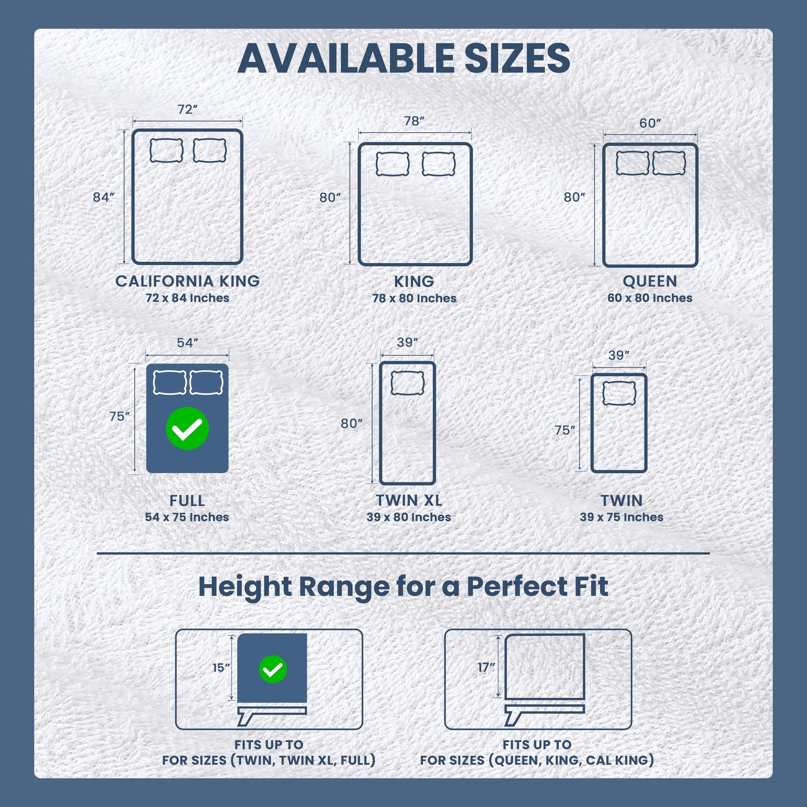- Mattress Protector: Fits Full size mattress perfectly with dimensions 54 inches by 75 inches by 15 inches, featuring professionally turned hems and deep fitted pockets