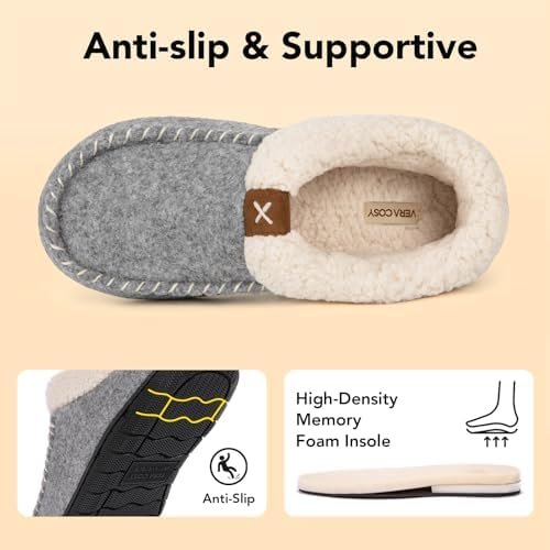 Review VeraCosy Women’s Moccasin Slippers Warm Comfy Wool-felt Memory Foam Indoor House Shoes, Black.