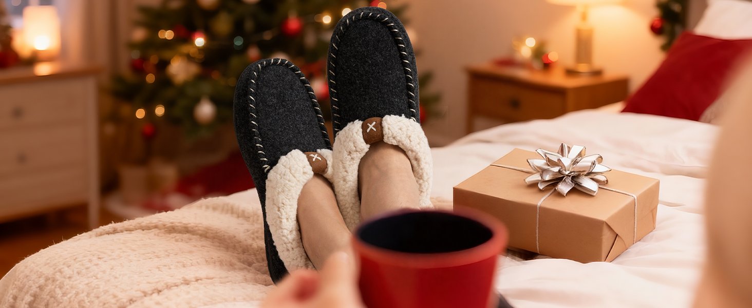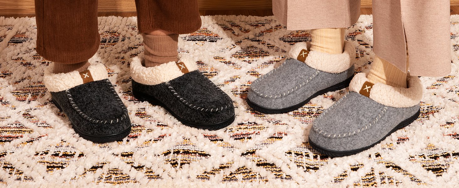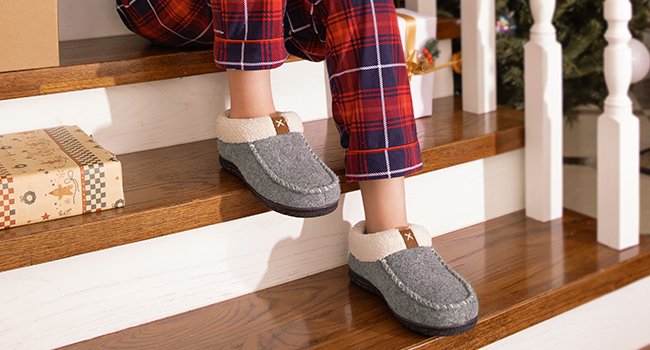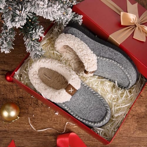 - Elegant Design & Thick Upper: Made from a thick felt fabric on the upper which helps to keep feet nice and insulated, these women’s moccasin slippers are designed with decrotive micro suede band detailing, two hues stitching on the trim, and warm ankle fleece. These women’s slippers are ideal for cold seasons