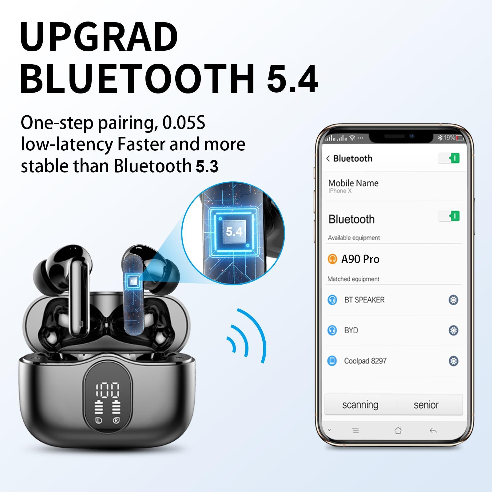 - 2025 Bluetooth 5.4 Technology : The wireless earbuds use the bluetooth 5.4 chipset. There is a faster and more stable signal transmission and has successfully achieved low latency without interruption. With a range of up to 15 m, whether you are at home, in the office, or on the road, you don’t have to worry about disconnection of the bluetooth earbuds. Automatic pairing & compatible with multiple devices.