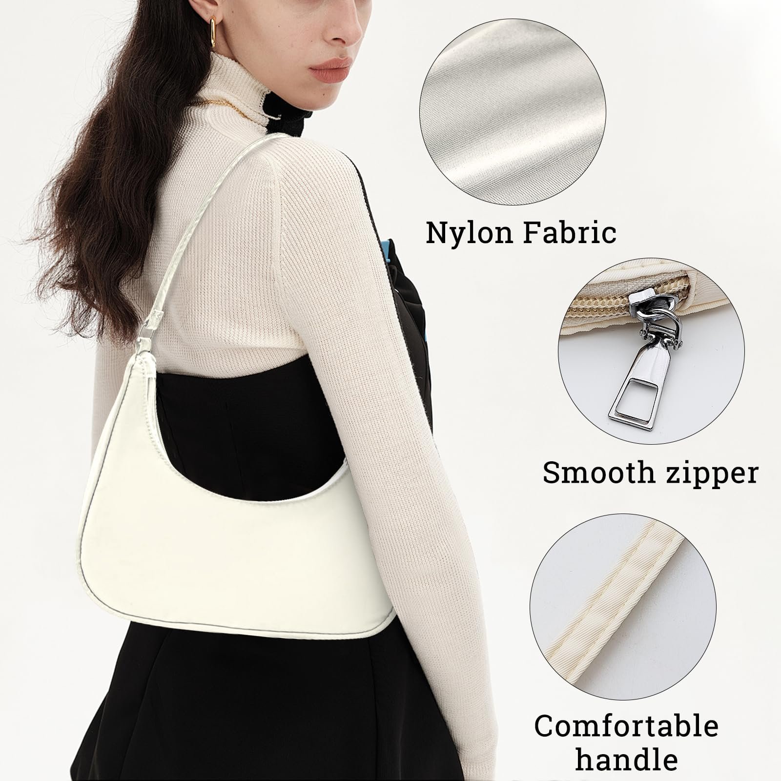 • 【Nylon Material】 The half moon bag is made of nylon, with a smooth and water-repellent surface that is easy to maintain. The zipper pull and the shoulder strap joint are all made of metal, which is textured and can be applied for a long time.