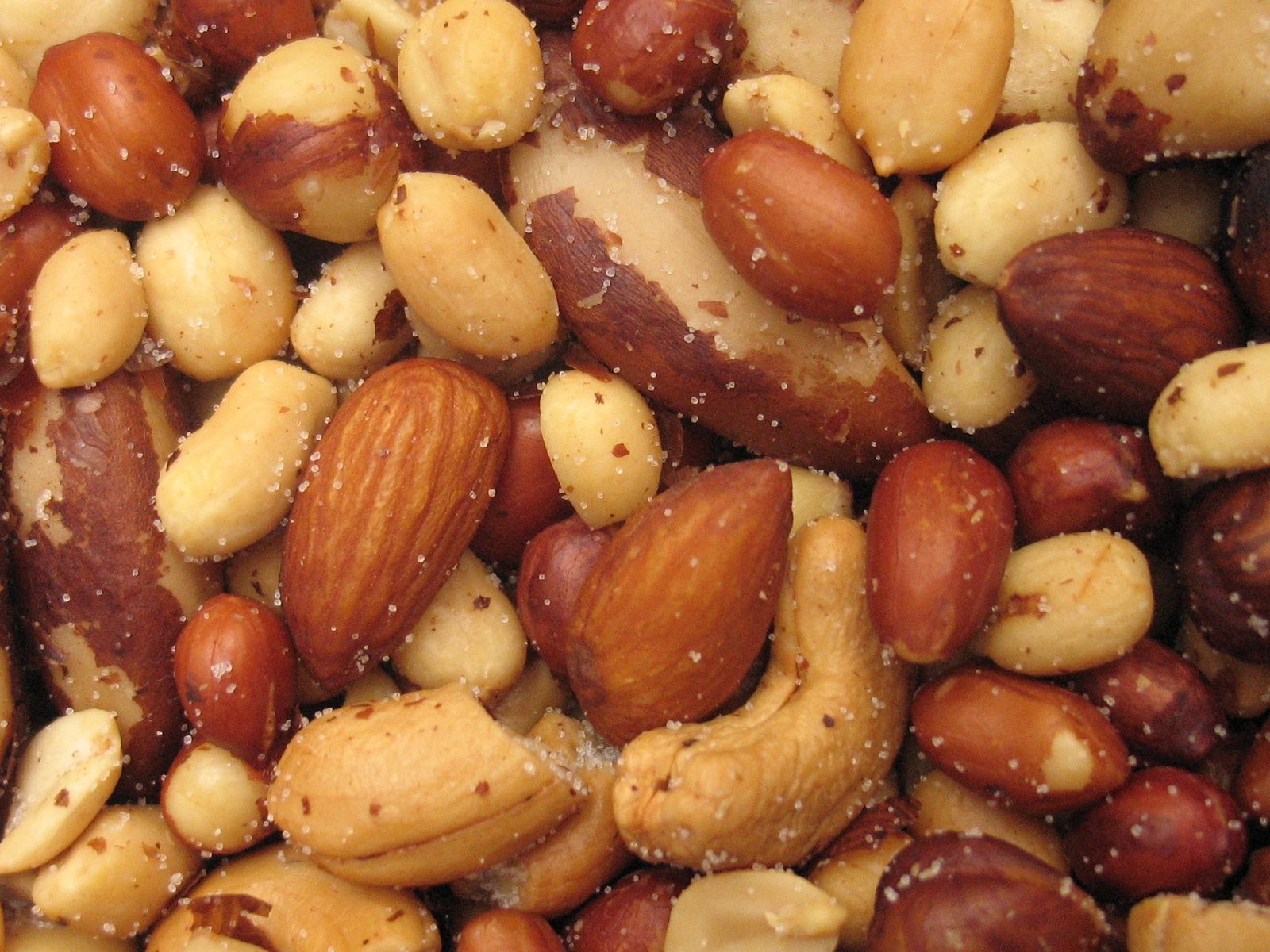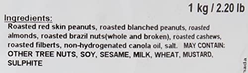 - Includes roasted peanuts, cashews, almonds, Brazil nuts, and hazelnuts