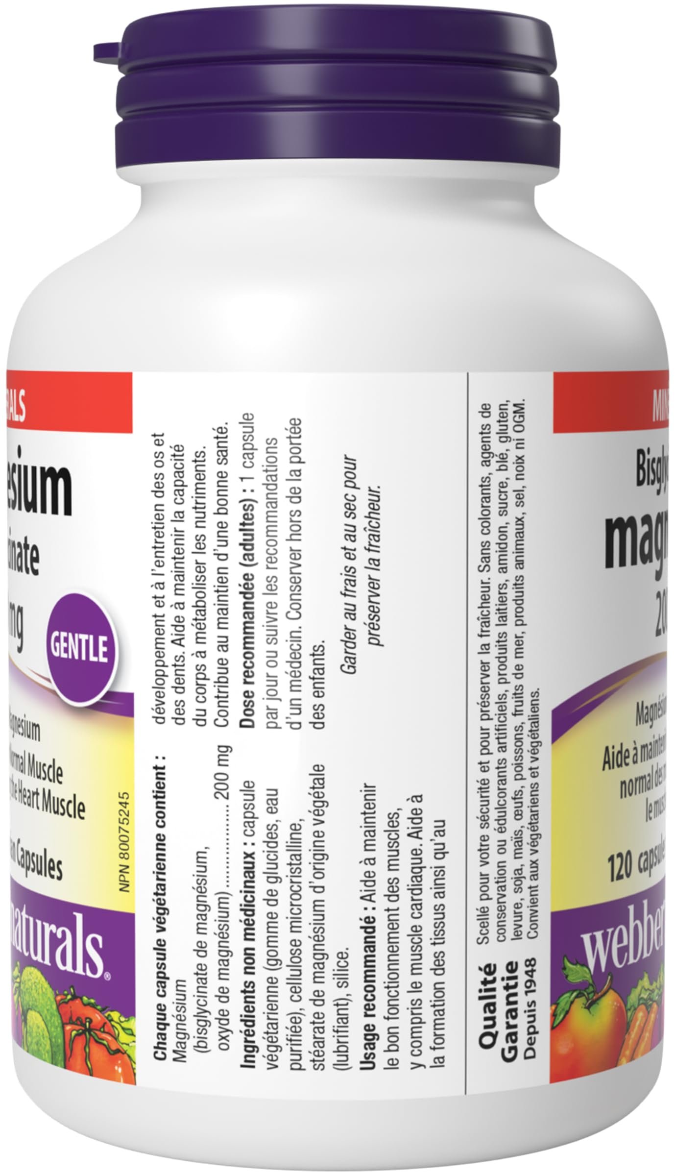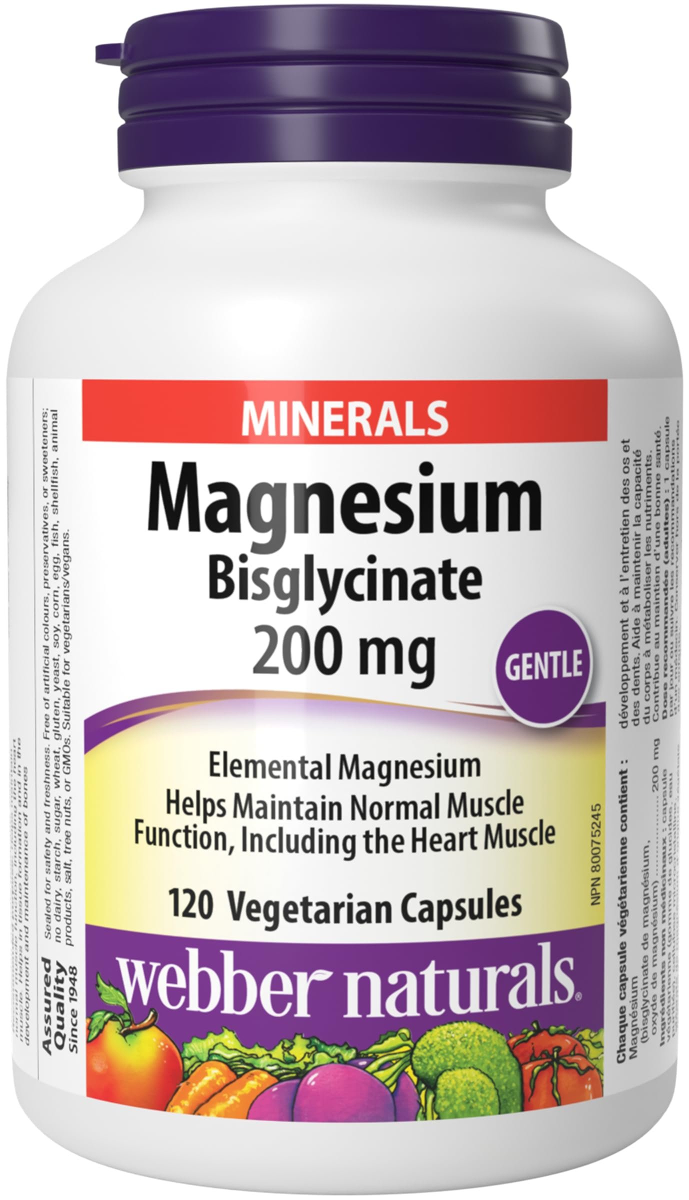 Webber Naturals Magnesium Bisglycinate 200 mg, 120 Capsules, Supports Bone and Muscle Functions, Vegan
